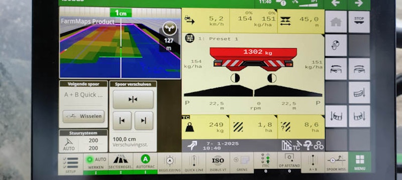 Alfred: ‘Dus is er een directe koppeling naar je eigen bedrijf.’ Tijdens de cursus worden ook taakkaarten van de cursuslocatie gebruikt en kunnen telers op dag twee in de praktijk zien hoe de ingevoerde data uit de theorie van dag één in de praktijk werkt. Corné: ‘We hebben op de cursuslocatie een trekker met werktuigen (o.a. kunstmeststrooier, geoploeg, spuiten), laden taakkaarten in en telers kunnen zo zien hoe het echt werkt.’
